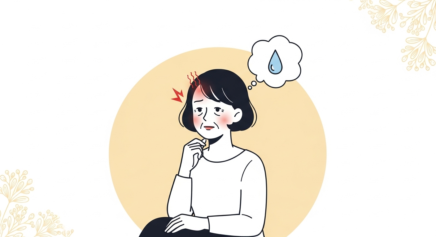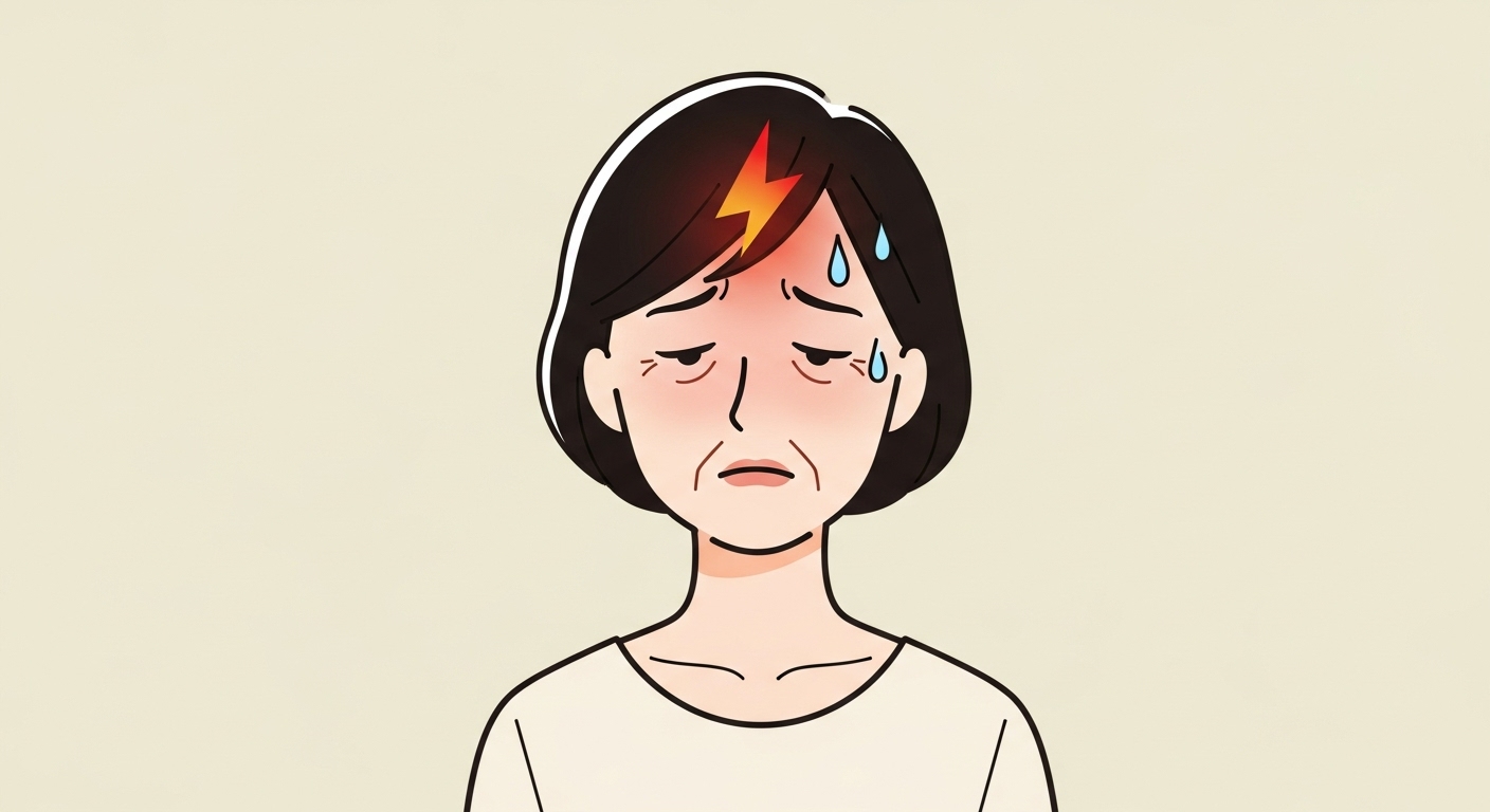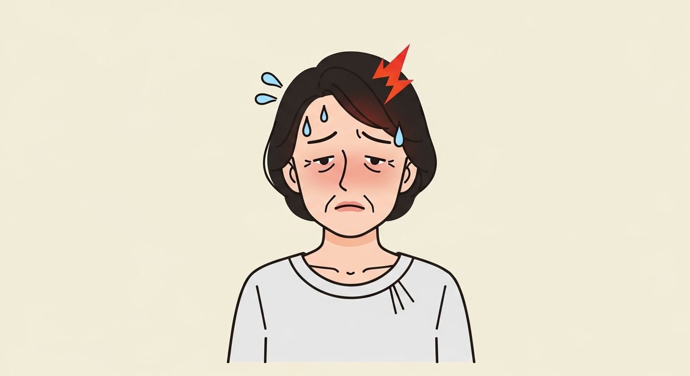 대표적인 증상으로, 얼굴과 목, 가슴 부위가 갑자기 달아오르며 땀이 많이 납니다. 체온 조절 기능이 불안정해져서 나타나며, 하루에도 여러 번 반복될 수 있습니다.