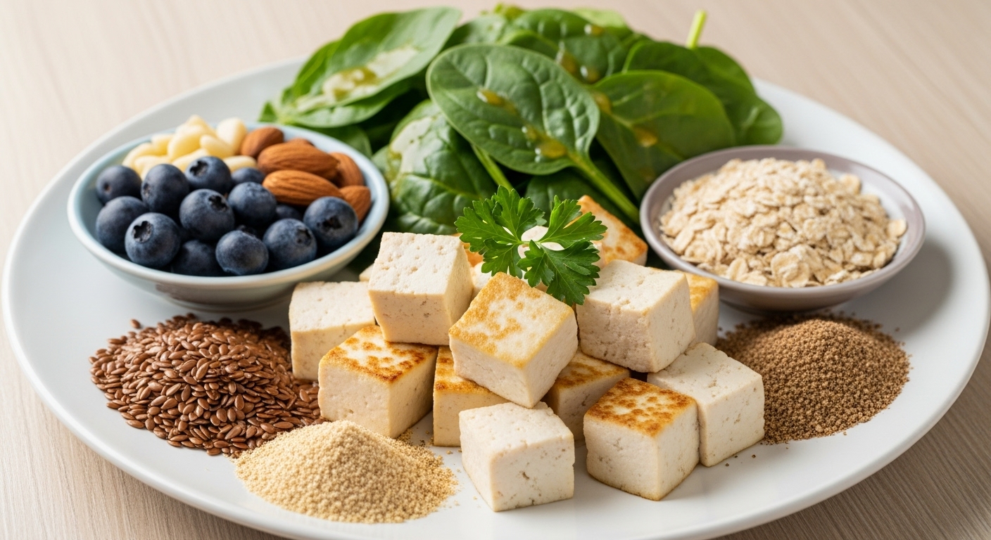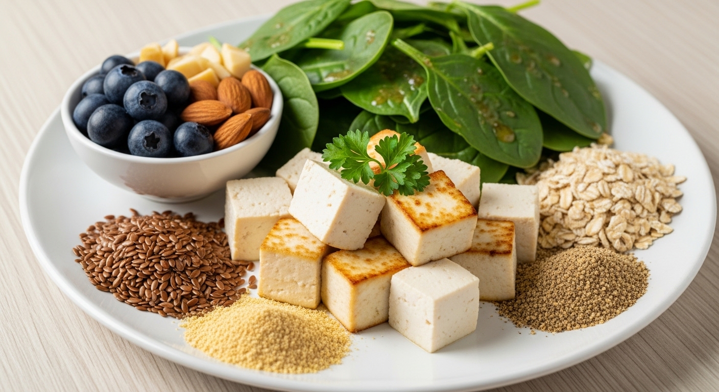 단백질, 칼슘, 비타민 D, 식이섬유가 풍부한 식단을 유지하는 것이 좋습니다. 특히 콩, 두부, 아마씨 등 식물성 에스트로겐이 풍부한 식품이 도움이 됩니다.