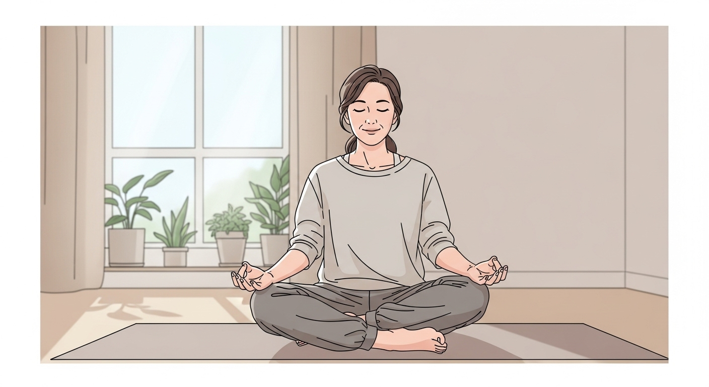 명상, 요가, 산책 등으로 긴장을 풀어주는 습관이 중요합니다. 수면의 질도 함께 개선되어 갱년기 증상 완화에 도움이 됩니다.