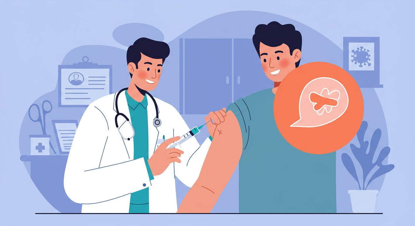 주사부위 통증·발적·부기 등이 흔하며 대부분 경미하고 48~72시간 내 호전된다.