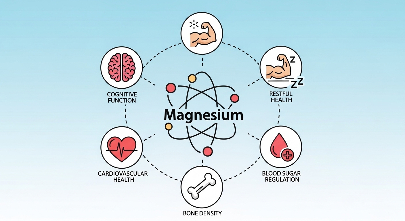마그네슘은 체내 300가지 이상의 효소 반응에 관여하는 필수 미네랄입니다. 에너지 생성, 단백질 합성, 신경 전달 조절 등 생리학적으로 매우 중요한 역할을 수행합니다.