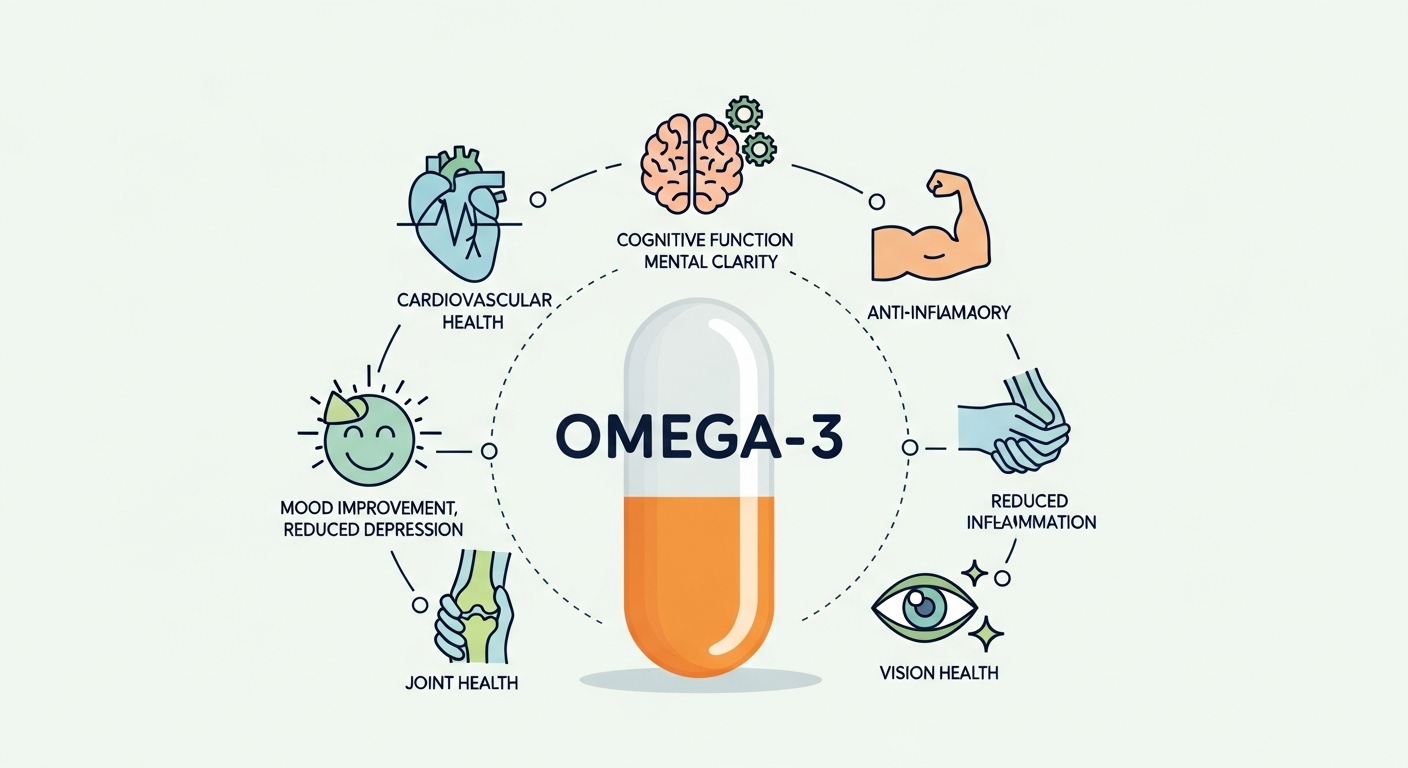 섭취된 오메가3는 혈액을 통해 전신으로 이동하며, 염증 조절, 혈액 순환 개선, 신경 세포 기능 유지 등에 활용됩니다.